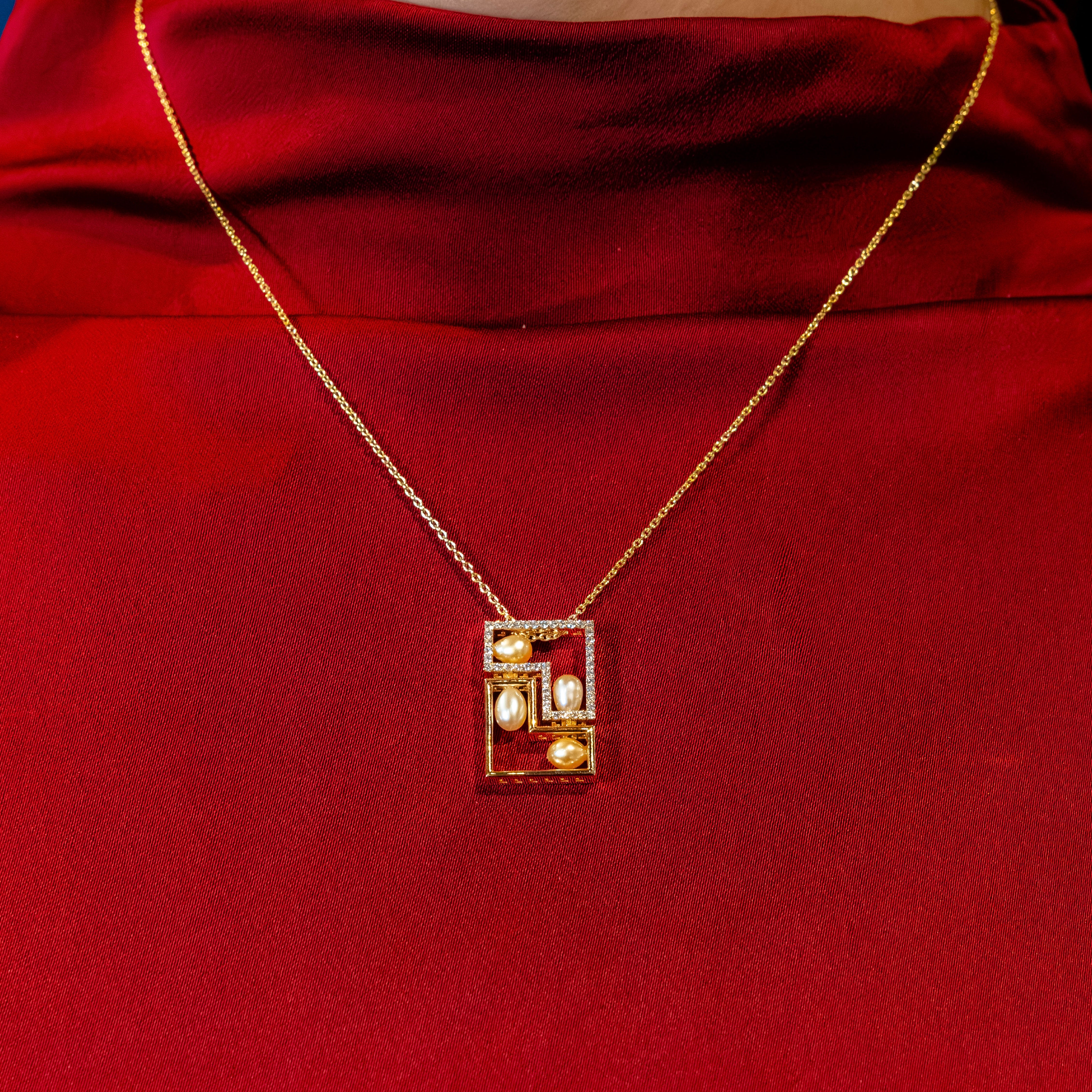 قلادة مجموعة الخطوط المتحركة - من الذهب الأصفر