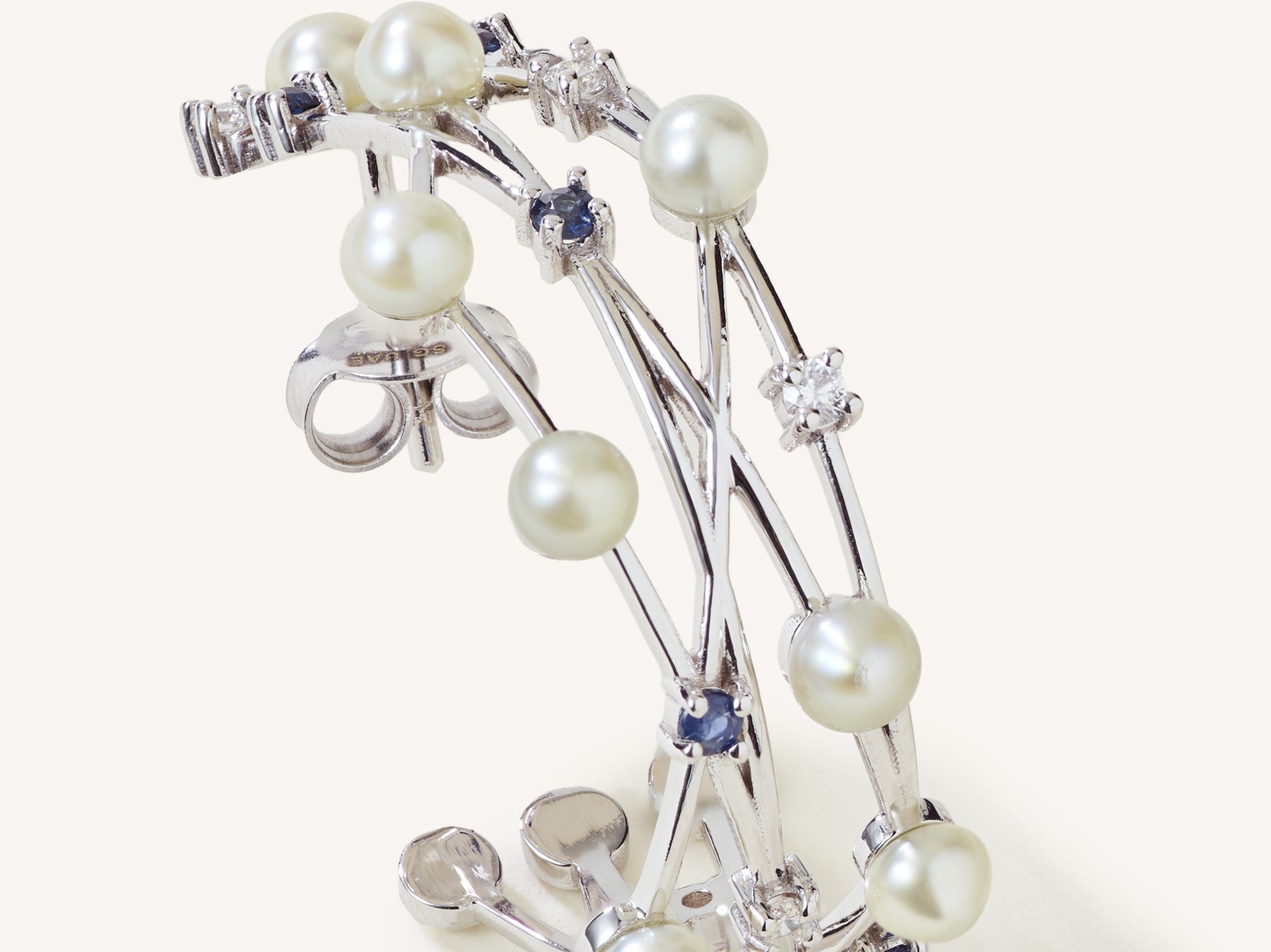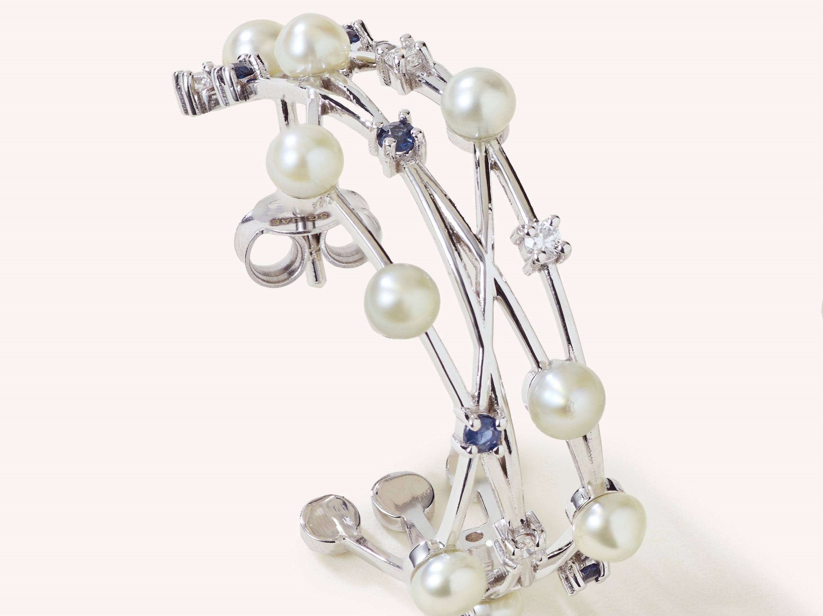 أقراط مجموعة الخطوط المتحركة - من الذهب الأبيض