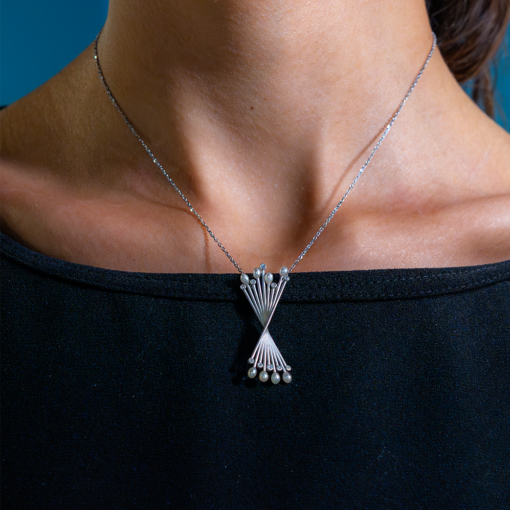 قلادة مجموعة الخطوط المتحركة - من الذهب الأبيض