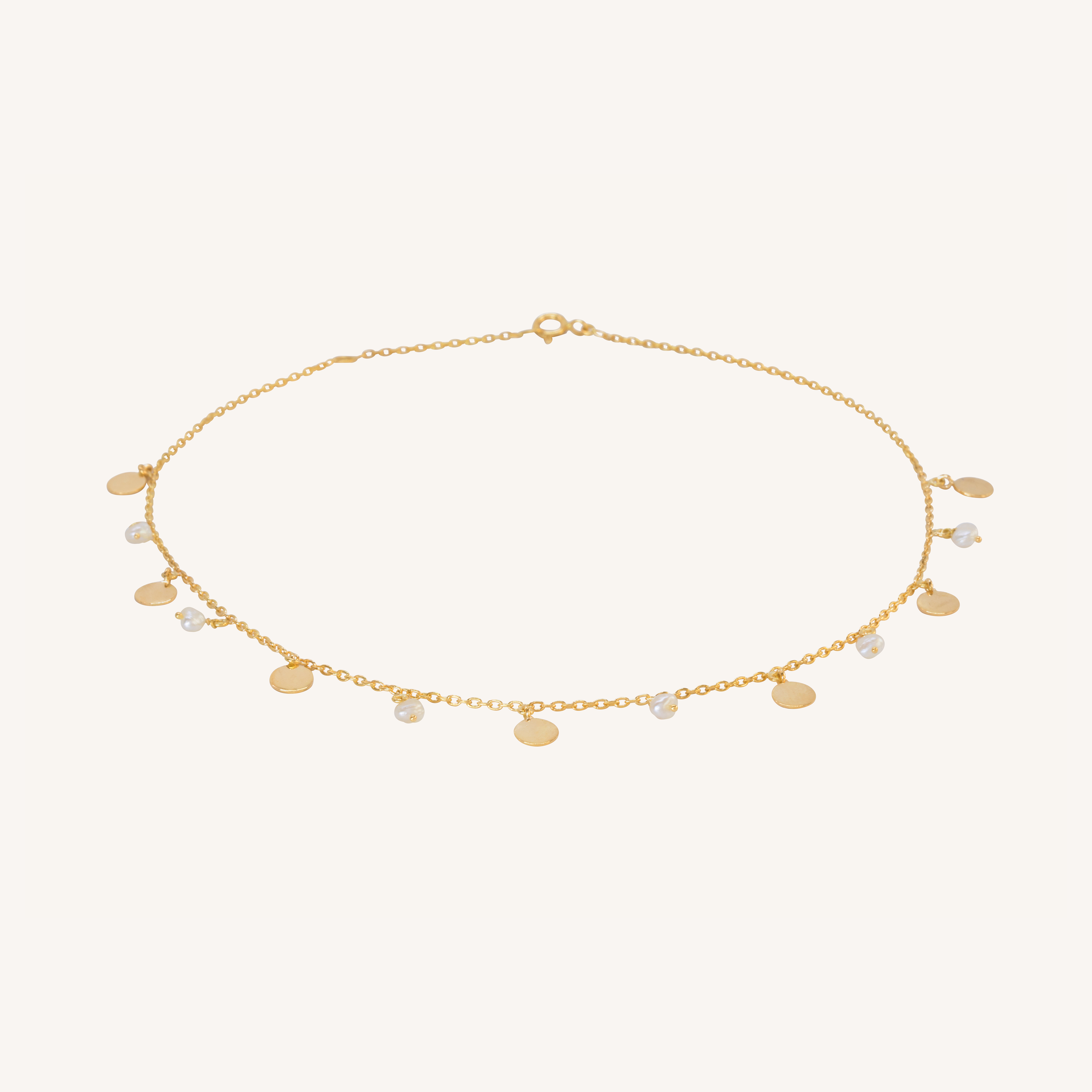 مزنط من أقراص من الذهب الأصفر مع اللؤلؤ الطبيعي.