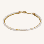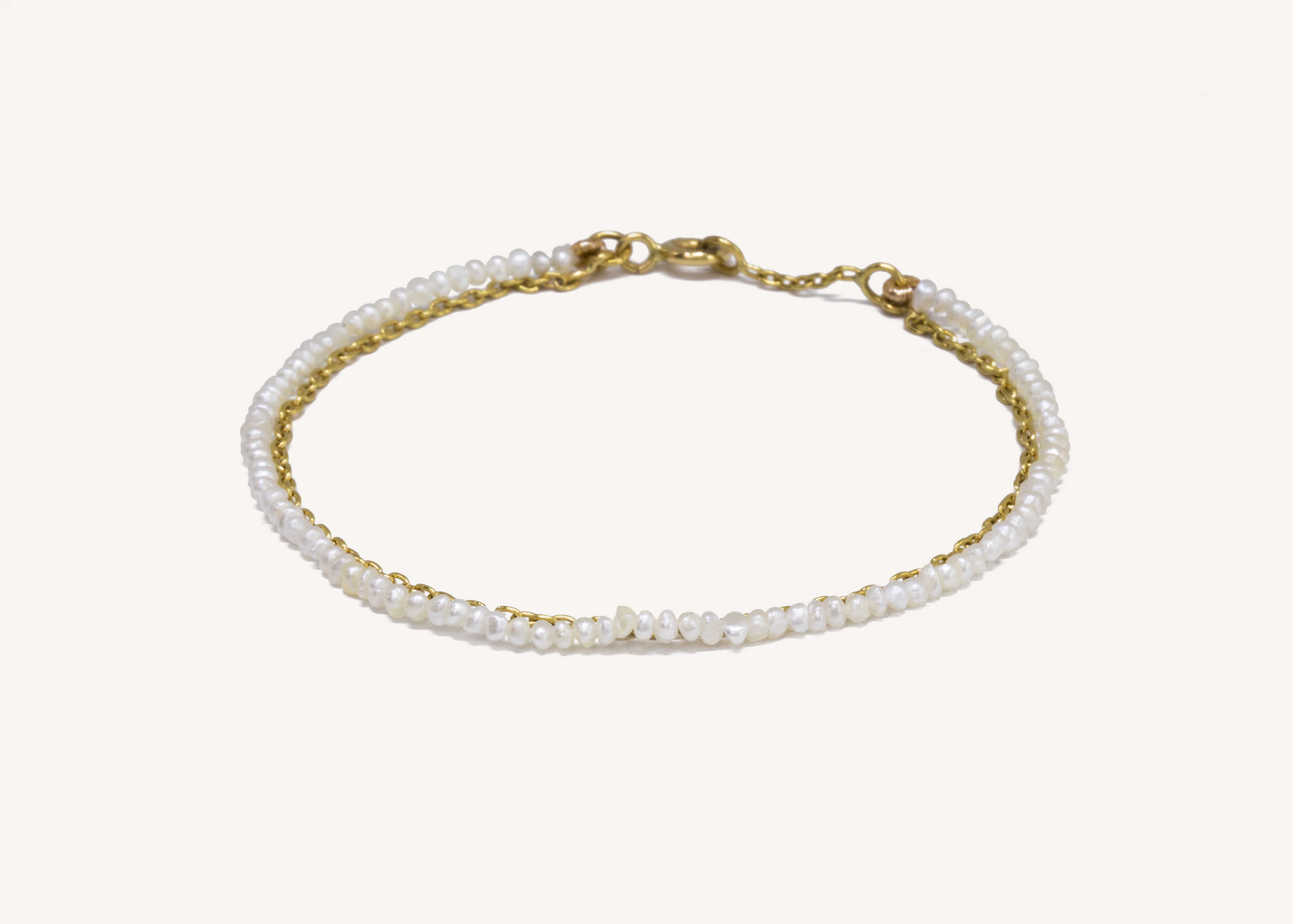 خيط من اللؤلؤ الطبيعية موصول بسلسلة ذهبية رقيقة.