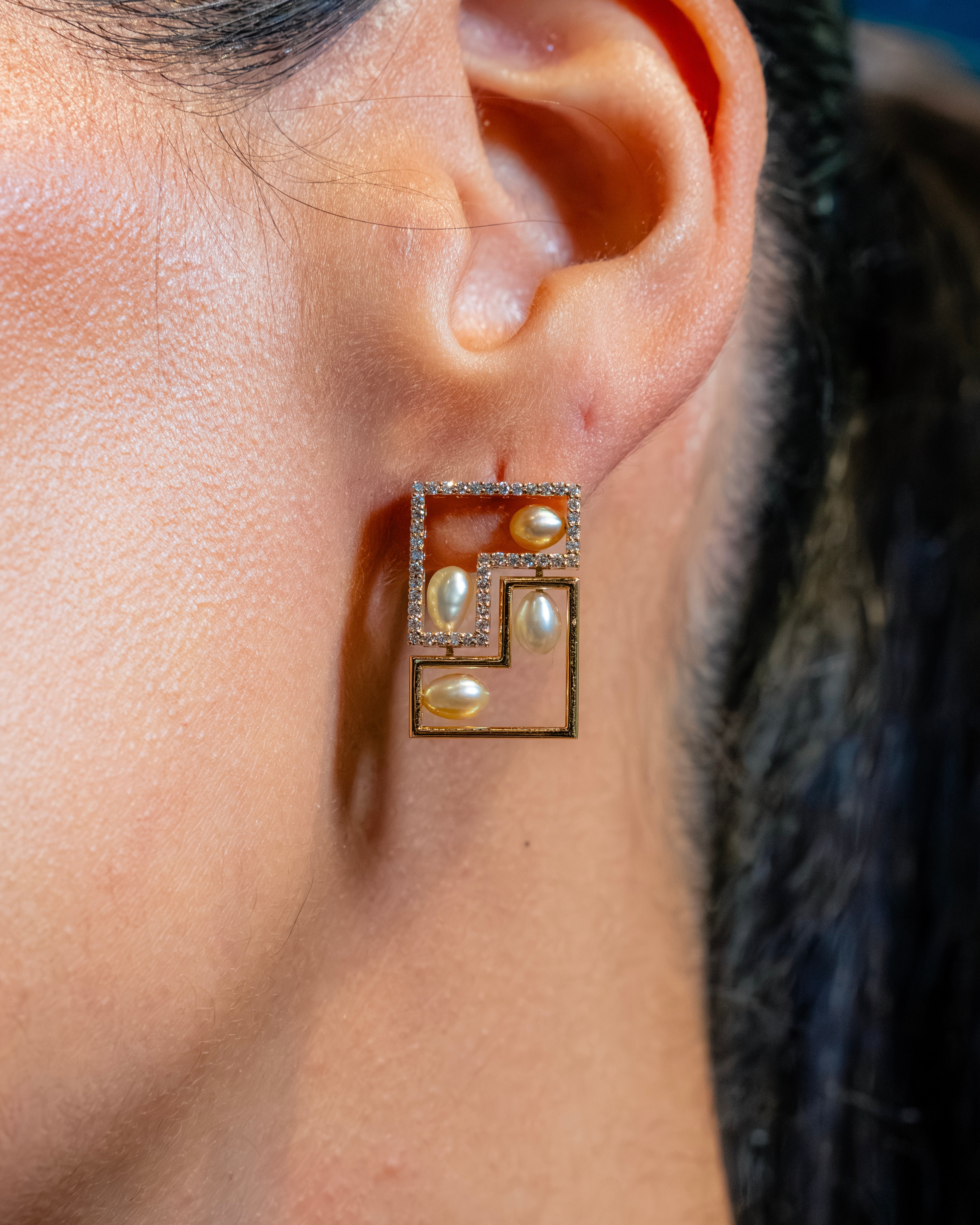 تجمع المجموعة الهندسية بين الدقة المعمارية وجمال اللآلئ. تتكوّن القطع من الذهب الأصفر، وتُبرز زواياها تفاصيل من الألماس الناصع، ما يخلق تناغمًا مضيئًا مع اللآلئ المختارة بعناية لما تحمله من تدرجات في الألوان.