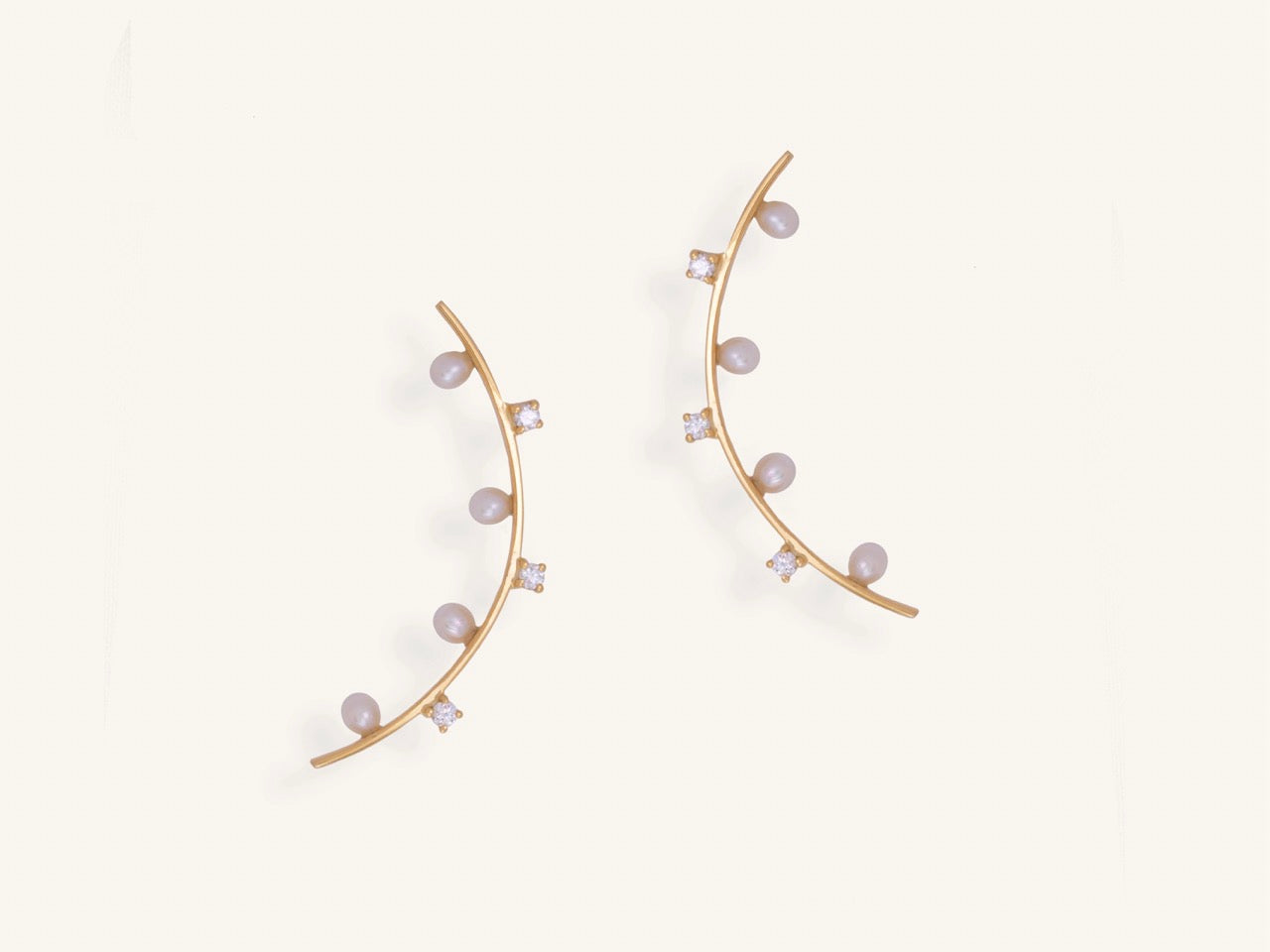 تبرز هذه الأهلة المصنوعة من الذهب الأبيض باللآلئ الطبيعية والألماس.