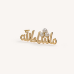 دبوس زينة بكلمة "ما شاء الله" مصنوع من الذهب الأصفر.