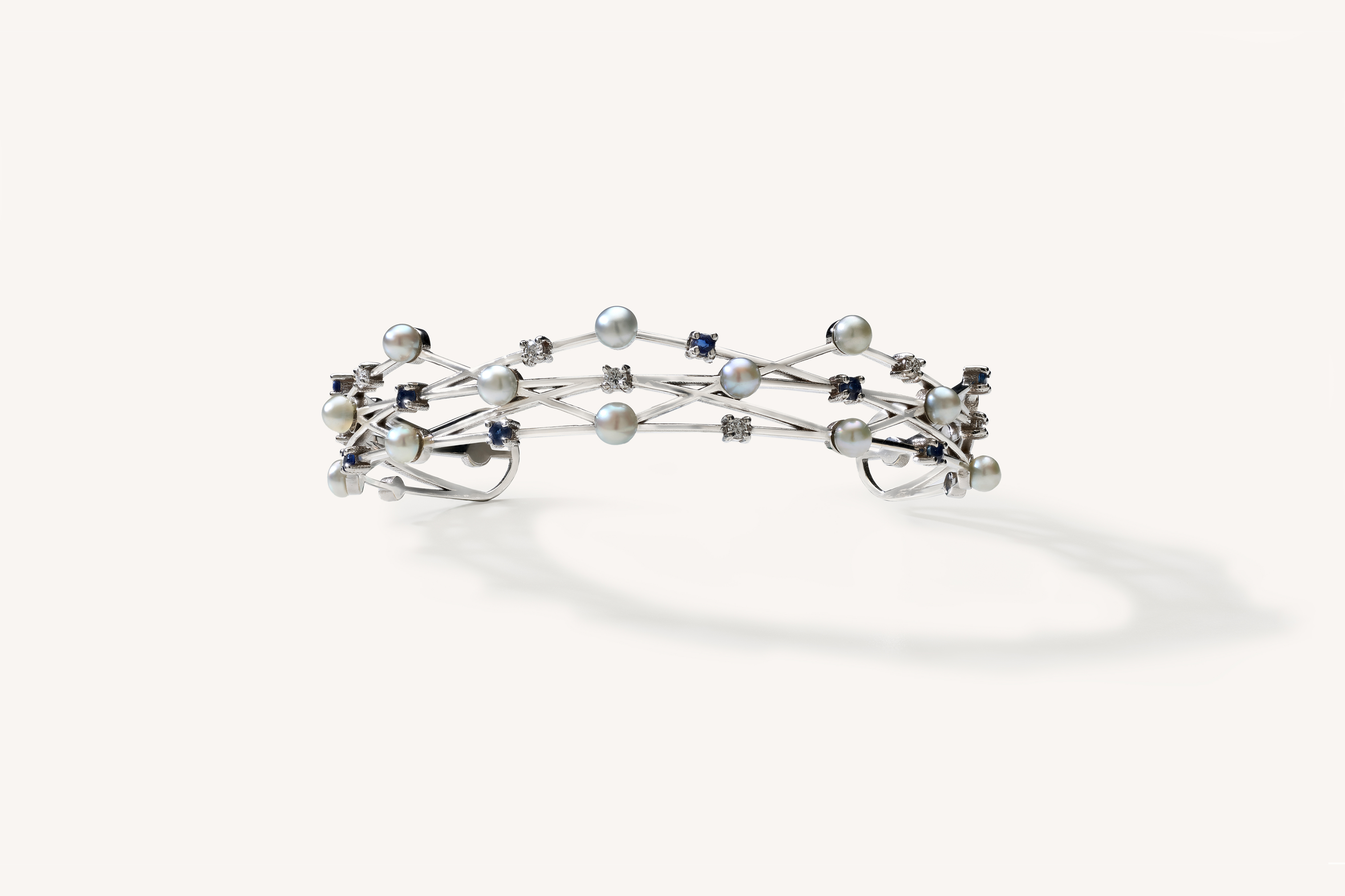 Discover our exclusive collection that marries innovation with artistry. Each piece features striking ""matchstick"" designs adorned with lustrous natural pearls and sparkling diamonds. This captivating blend of structured geometry and organic elegance elevates any look.
