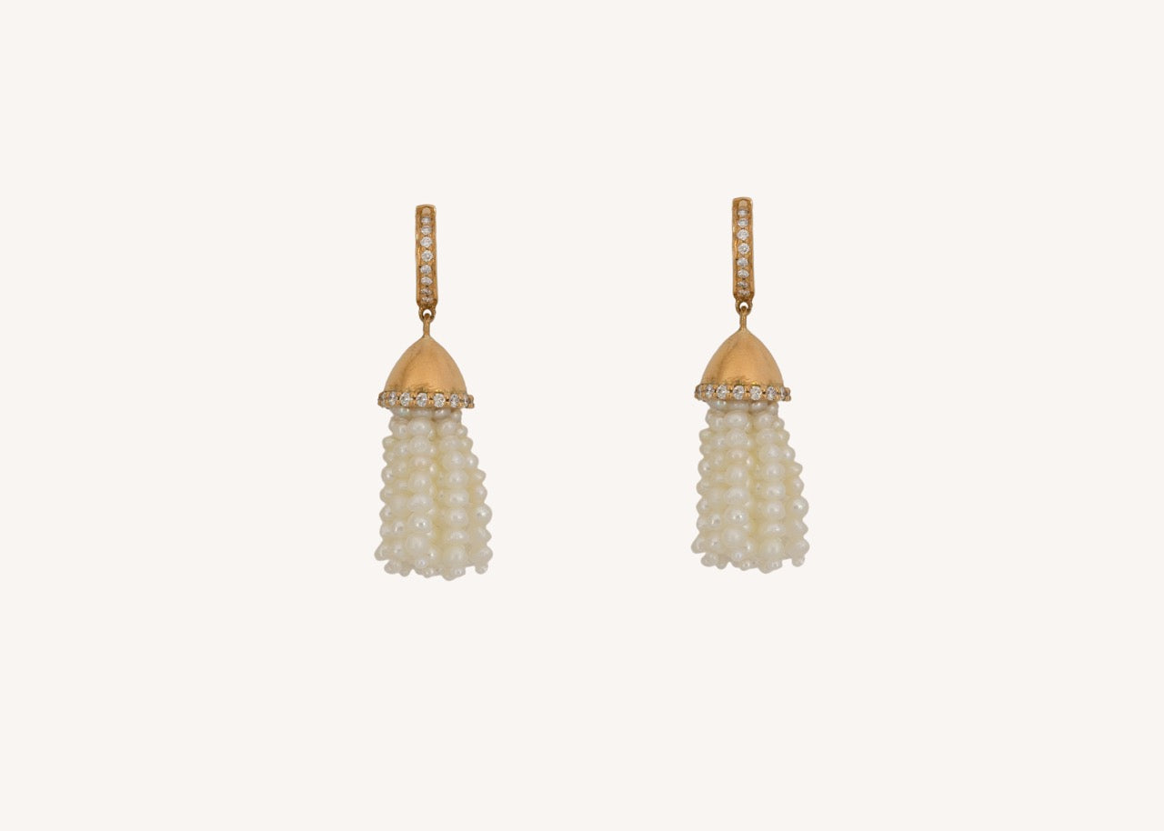 تألقي بأناقة مجموعة الدلايات لدينا، حيث تتكون كل قطعة في المجموعة من خيوط من اللؤلؤ الطبيعي تتأرجح بمرونة من قبب ذهبية مشغولة بدقة. صممت هذه الدلايات لتلتقط بريق اللؤلؤ الطبيعي المذهل، وتخلق فنٌ ساحر عند تخلخل الضوء من خلالها مع كل حركة.