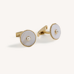 Mother of Pearl Round Cufflinks - Yellow Gold