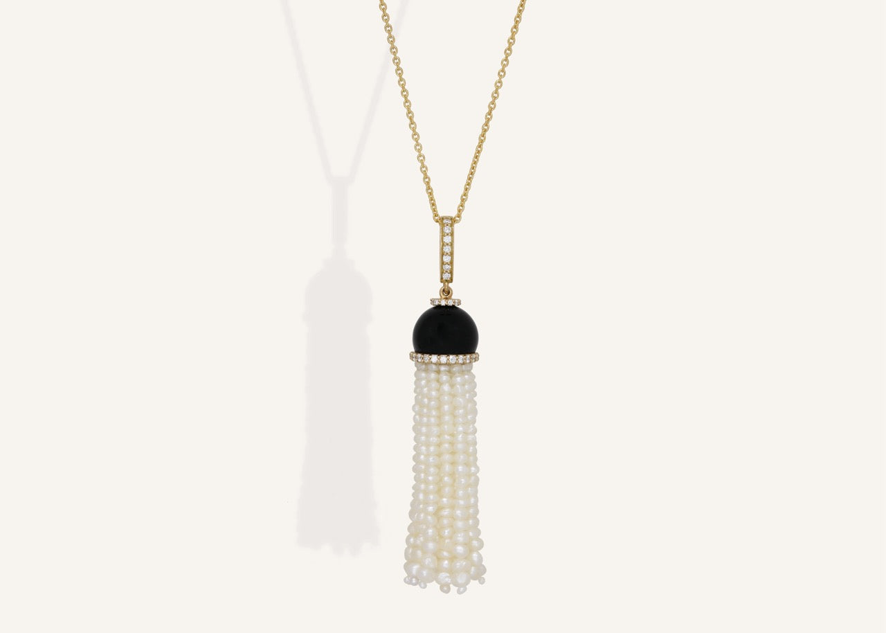 تألقي بأناقة مجموعة الدلايات لدينا، حيث تتكون كل قطعة في المجموعة من خيوط من اللؤلؤ الطبيعي تتأرجح بمرونة من قبب ذهبية مشغولة بدقة. صممت هذه الدلايات لتلتقط بريق اللؤلؤ الطبيعي المذهل، وتخلق فنٌ ساحر عند تخلخل الضوء من خلالها مع كل حركة.