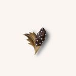 هذا البروش الرائع هو مزيج مذهل بين الطبيعة والفن، حيث يلهم الشكل الفريد لخشب العود إنشاء وردة رقيقة. تضيف ورقة الذهب المصنوعة من الذهب غير اللامع عيار 18 قيراطًا عمقًا وملمسًا، مما يكمل الشكل العضوي للخشب بشكل مثالي. تم تزيين القطعة بشكل أنيق بلآلئ لامعة، تم وضع كل منها بدقة لتعزيز التدفق الطبيعي للتصميم.