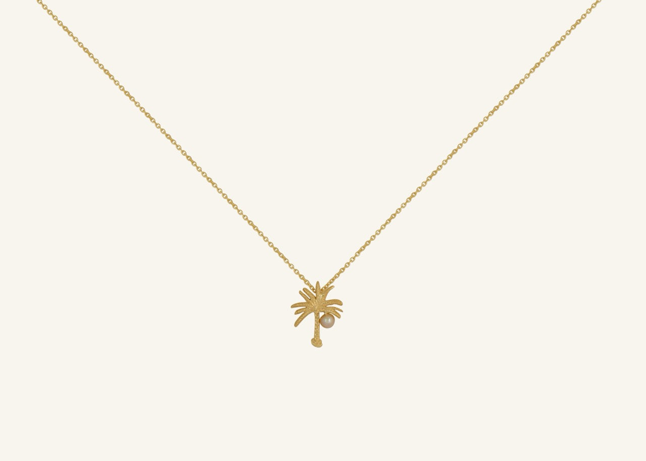 نخلة عليها لؤلؤة طبيعية مثبتة على سلسلة من الذهب الأصفر.