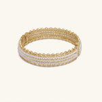 مستوحاة من الاساور التقليدية، ثلاث صفوف من اللؤلؤ الطبيعي المثبتة على إسوار من الذهب.