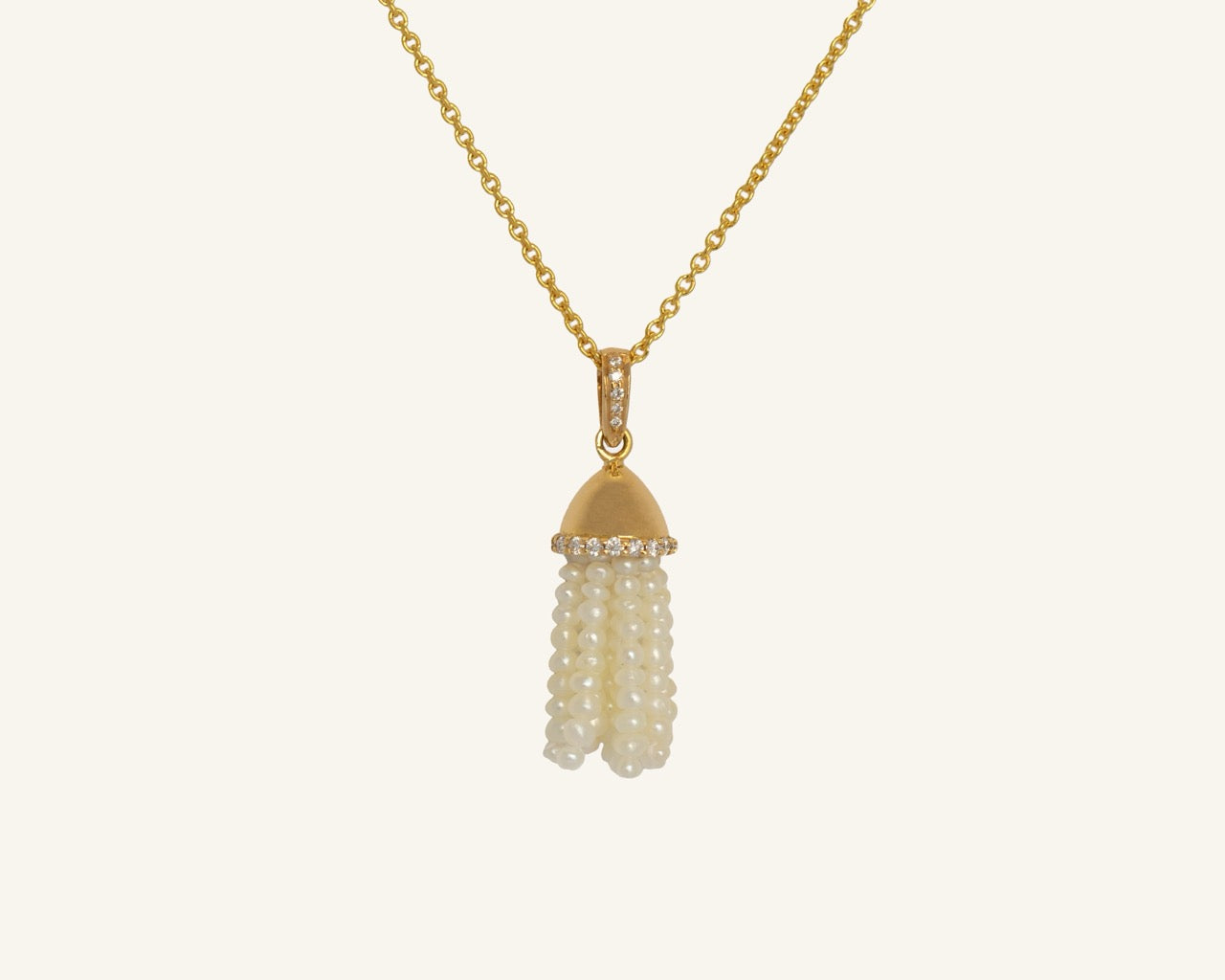تألقي بأناقة مجموعة الدلايات لدينا، حيث تتكون كل قطعة في المجموعة من خيوط من اللؤلؤ الطبيعي تتأرجح بمرونة من قبب ذهبية مشغولة بدقة. صممت هذه الدلايات لتلتقط بريق اللؤلؤ الطبيعي المذهل، وتخلق فنٌ ساحر عند تخلخل الضوء من خلالها مع كل حركة.