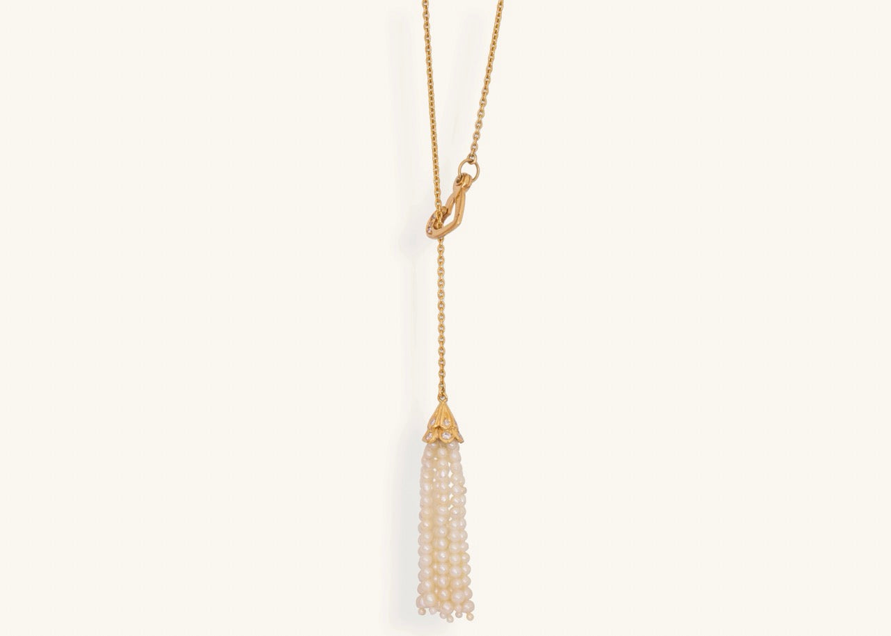 تألقي بأناقة مجموعة الدلايات لدينا، حيث تتكون كل قطعة في المجموعة من خيوط من اللؤلؤ الطبيعي تتأرجح بمرونة من قبب ذهبية مشغولة بدقة. صممت هذه الدلايات لتلتقط بريق اللؤلؤ الطبيعي المذهل، وتخلق فنٌ ساحر عند تخلخل الضوء من خلالها مع كل حركة.