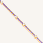 Inspired by the classic tennis silhouette, the Aurora Collection reinterprets it through hand-applied enamel in luminous shades of sunlit yellow, lilac and blush pink. Crafted in gold and accented with carefully selected natural pearls, each piece reflects the quiet brilliance of nature’s own Aurora light display. Designed to layer effortlessly, the rings, bracelets, necklaces and earrings move fluidly together.