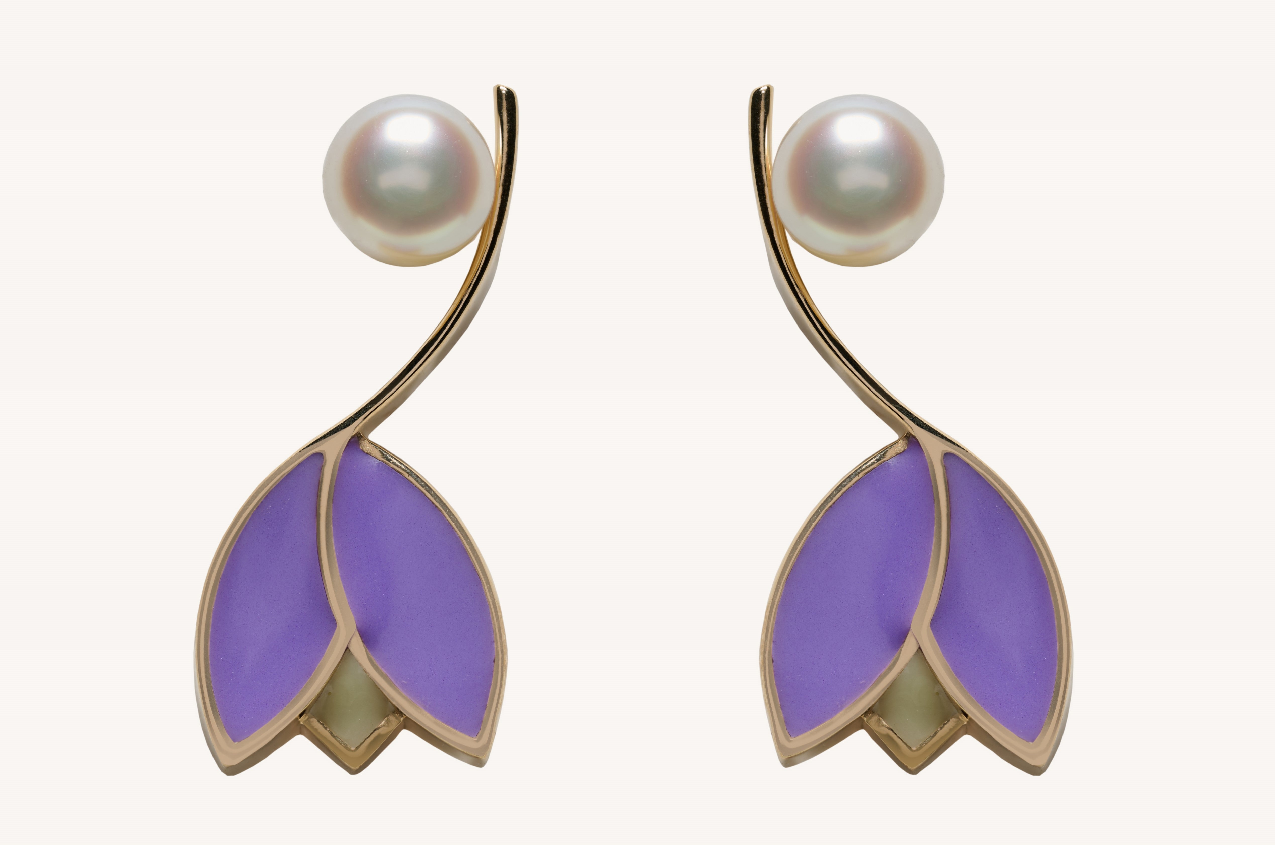 The Tulips Collection is a radiant fusion of nature and artistry. Each piece is meticulously crafted in warm yellow gold and brought to life with finely applied enamel work, creating the vibrant colors of a spring bloom, complementing the delicate luster of the pearls.
