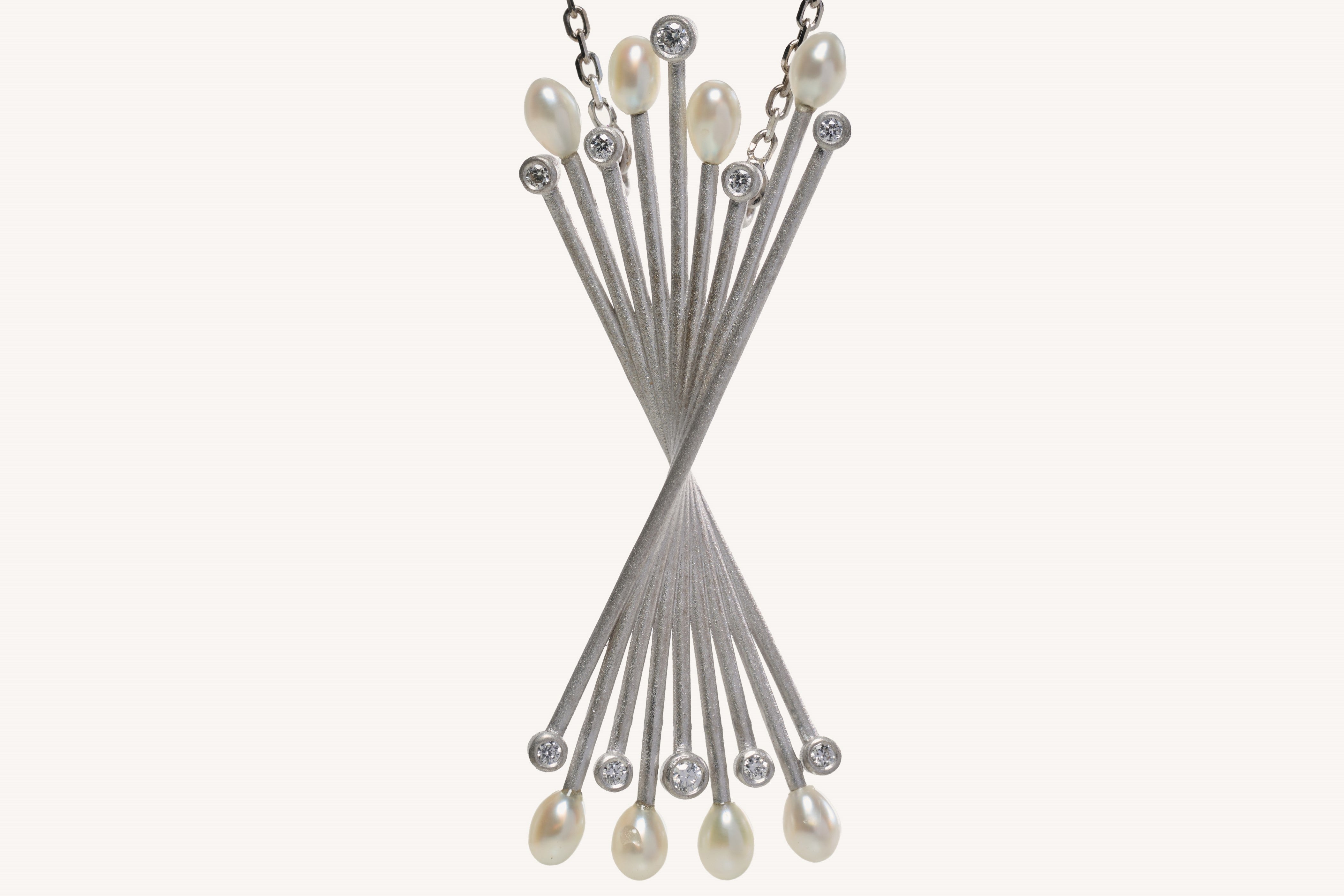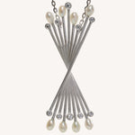 The Rotating spikes set captures movement and light in precious metal. Each piece features spikes of gold that twist elegantly at the center before radiating outward. The tips of these spikes being accentuated by pearls and Diamonds to give the set a complementary warm glow.